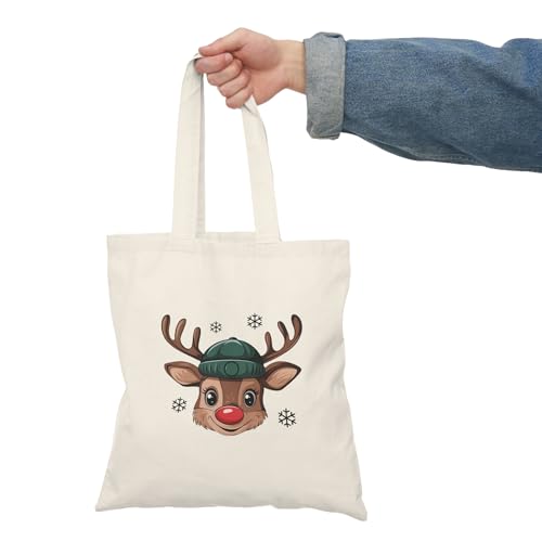 Generic - شنطة توت قماشية بسوستة 141 - شنطة يد كبيرة توت بتصميم سانتا كلوز للكريسماس مع سحاب