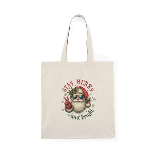 Generic - شنطة توت قماشية بسحاب 147 - شنطة يد كبيرة توت بتصميم سانتا كلوز للكريسماس مع سحاب