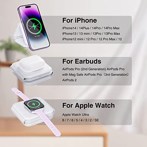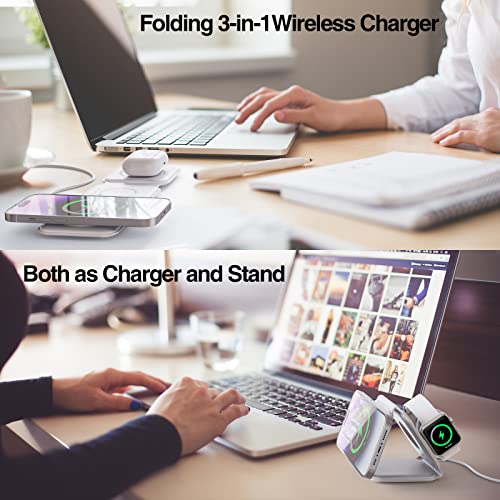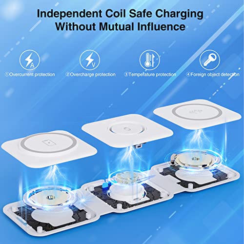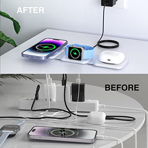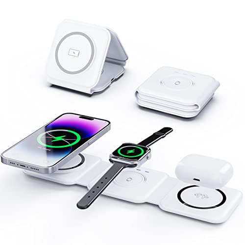 TOTU - شاحن لاسلكي مغناطيسي قابل للطي 3 في 1 لسلسلة ايفون 14/13/12 وايربودز 3/2/برو واي ووتش من توتو - سفر لأجهزة متعددة (أبيض)