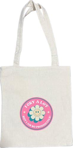 Generic - شنطة توتي بتصميم عبارة I Cry A Lot But I Am So Productive