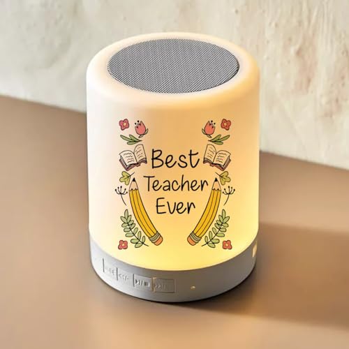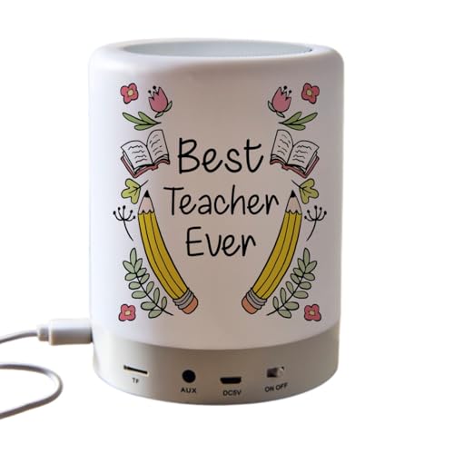 Generic - مكبر صوت لاسلكي يعمل باللمس بتقنية البلوتوث مع إضاءة ليد، بتصميم مخصص للمعلمات مكتوب عليه "أفضل معلم على الإطلاق"، مزوّد بطباعة مزدوجة وملصق مقاوم للماء، باللون الأبيض