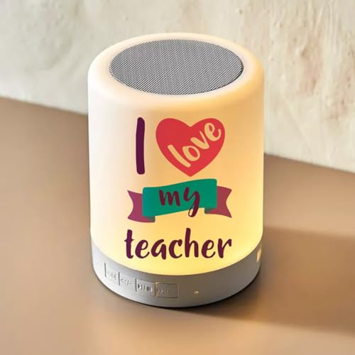 Generic - مكبر صوت بلوتوث لاسلكي LED للتحكم باللمس - ابيض - طباعة على الوجهين - ملصق مقاوم للماء - تصميم المعلمين - I love my teacher - We Print your Gift