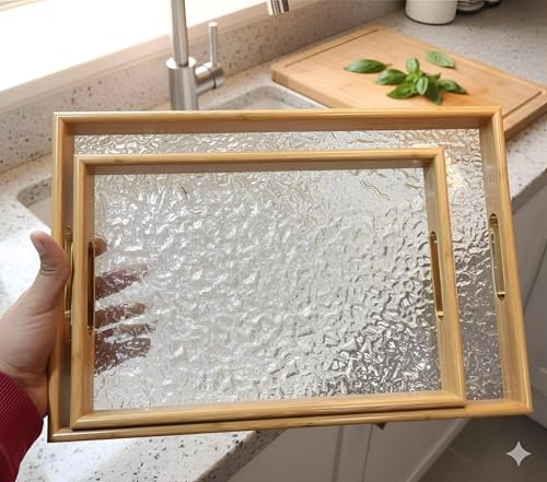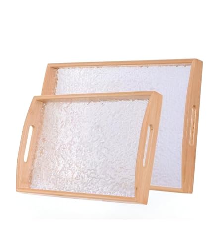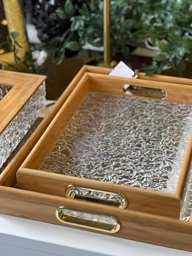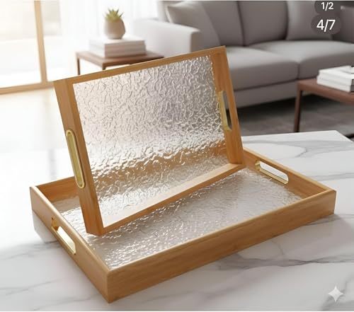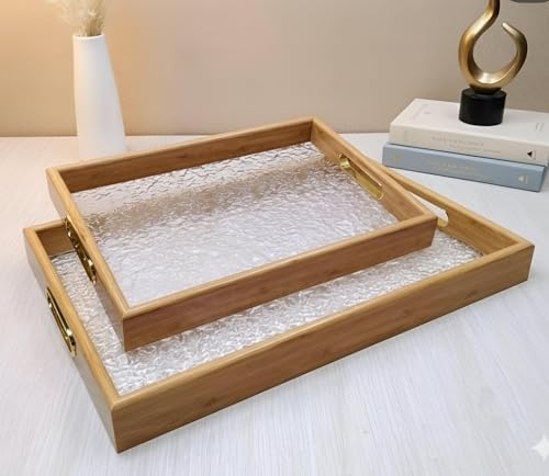 Generic - صينية بملمس زجاج - صينية من الخيزران الصيني بلون الخشب الطبيعي، مقاسات 39 × 28 سم و33 × 22 سم، صينية لتقديم وجبات الإفطار وحفلات الكوكتيل والتقديم الأنيق في الأماكن المغلقة، 2 قطعة