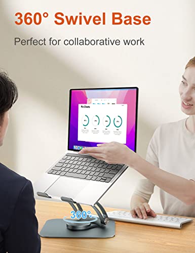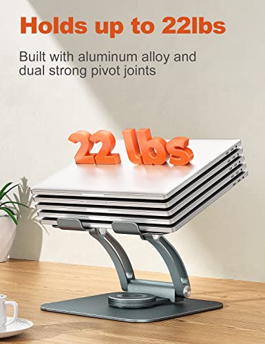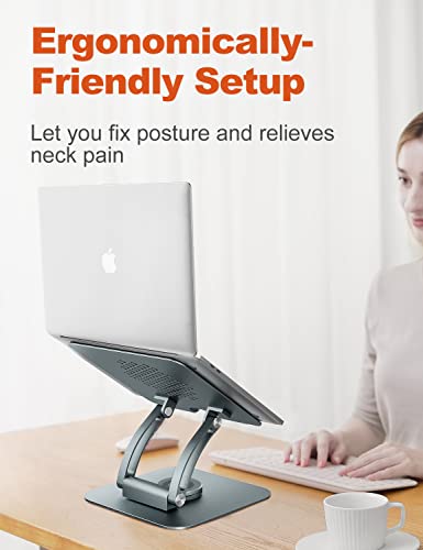 tounee - حامل لاب توب قابل للتعديل للمكتب، مريح مع قاعدة دوارة 360°، حامل كمبيوتر من الألومنيوم متوافق مع اير وبرو ولأجهزة اللاب توب من مقاس 10 بوصات حتى 16 بوصة - من توني، رمادي
