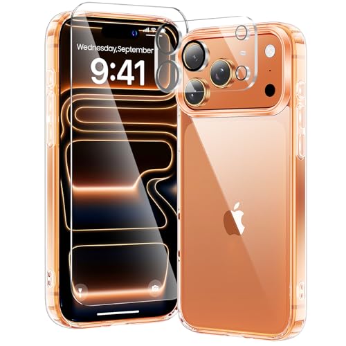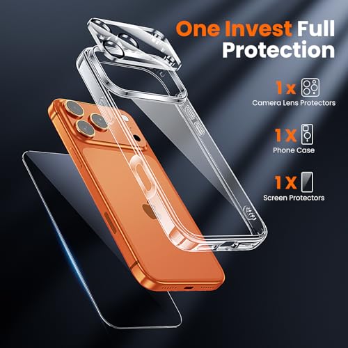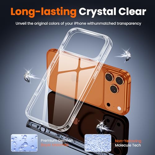 toushion - جراب شفاف 3 في 1 لموبايل ايفون 17 برو من توشين، ظهر اكريليك مقاوم للاصفرار، واقي شاشة ×1 وواقي عدسة الكاميرا، مضاد للصدمات لغطاء الموبايل 6.3 انش