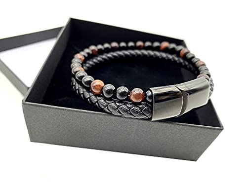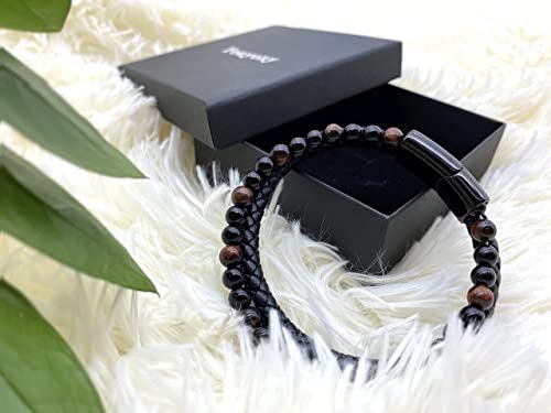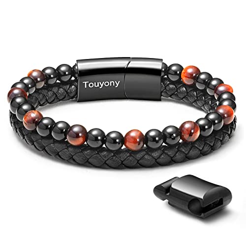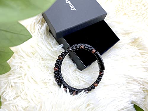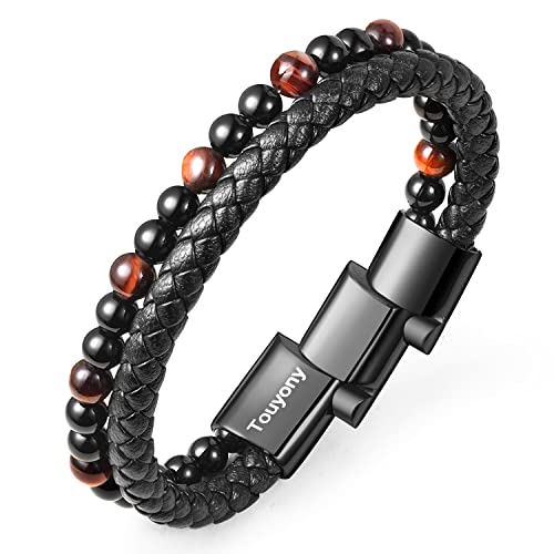 Touyony - سوار رجالي من مصنوع الجلد المنسوج والستانلس ستيل توي نوي طرازان للاختيار بينهما رائع للغاية للرجال جلد