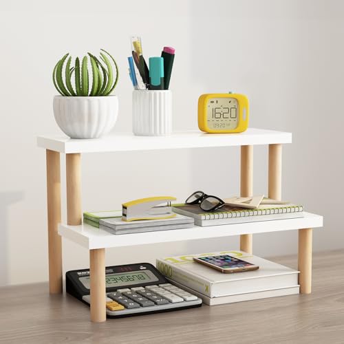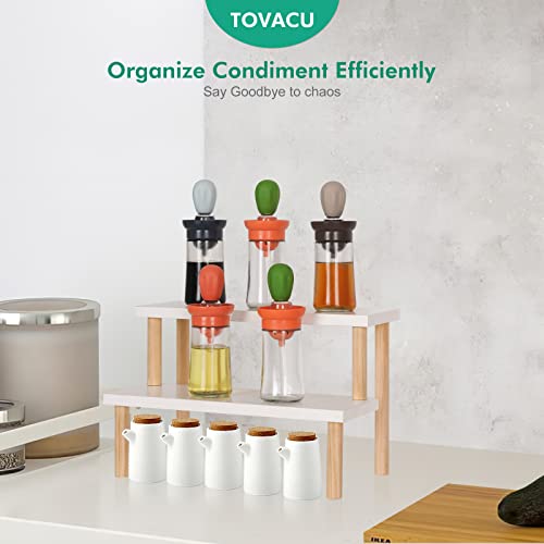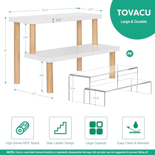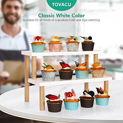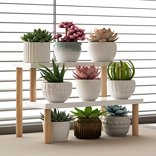 Tovacu - حامل نباتات صغير للأماكن المغلقة، رف سلم من طبقتين، حامل زهور على سطح المكتب وعتبة النافذة، حامل عرض خشب للنباتات العصارية، رف للتوابل والكب كيك من توفاكو (أبيض، 36 سم)