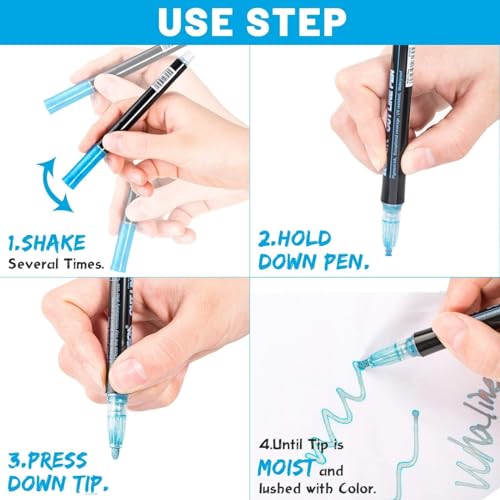 - [ ثلاثة تأثيرات كتابية] - تتميز أقلام التحديد السحرية الخاصة بنا بوظيفة خط أوتوماتيكي مزدوج فريدة. الكتابة على ورق فاتح وأبيض، يمكنك رسم خطين في وقت واحد، فضي معدني وملون. اللوحة على ورق داكن/أسود، تظهر الألوان الفضية فقط. إذا قمت بالطلاء على سطح أملس، فسيظهر الطلاء الملون فقط.