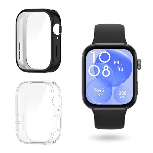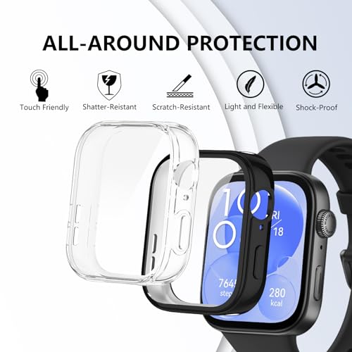 ToVioc - حافظة حماية كاملة من البولي يوريثين الحراري المرن مع شاشة متوافقة ساعة هواوي فيت 3 توفيوك [عبوة قطعتين] - اسود وشفاف