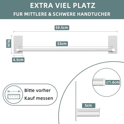 - ✅ طول حامل المنشفة: 55 سم | الطول المتوفر: 52 سم. توفر مساحة كافية للمناشف ومناشف الحمام لتجف بشكل أسرع.