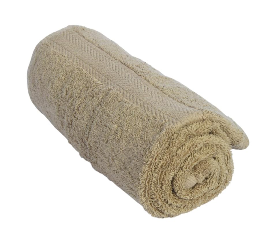 TM HOME - منشفة حمام قطنية شيفرون بحواف من تي ام هوم، 50×100 سم - بني فاتح