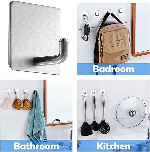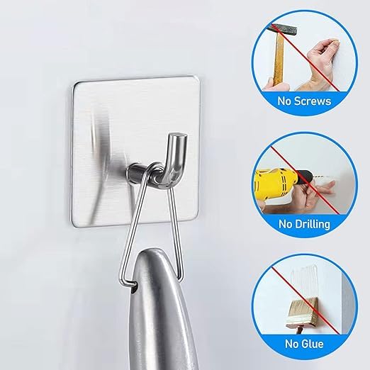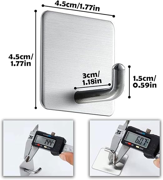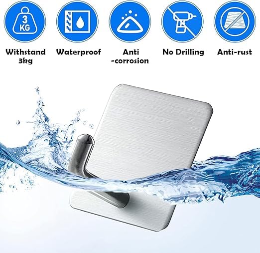 - ✔ هذه الخطافات اللاصقة للتعليق مصنوعة من فولاذ مقاوم للصدأ 304 عالي الجودة، وتتميز بتصميم متين ومقاوم للصدأ وللماء ومضادة للتآكل، يمكن استخدامها في البيئات الرطبة، مثل الحمام والتواليت، خطاف تخزين منزلي مثالي لتنظيم الأشياء الصغيرة في المنزل بسهولة.