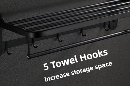 Generic - حامل مناشف (حامل فوط قابل للطي مع 5 خطافات، حامل يثبت على الحائط من الفولاذ المقاوم للصدأ) - أسود)
