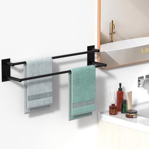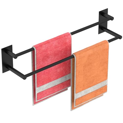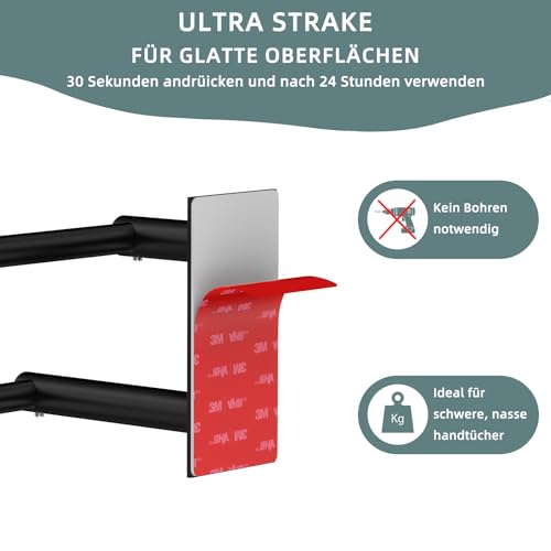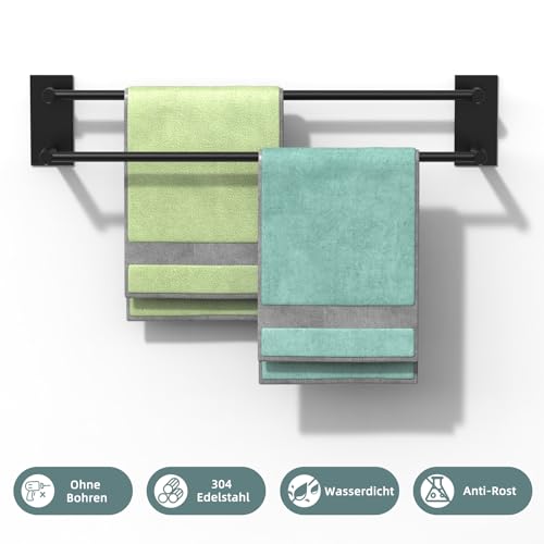 Strength Enemy - قضيب حامل فوط حمام ذاتي اللصق مزدوج من الفولاذ المقاوم للصدأ 304 يثبت على الحائط بدون ثقب مقاوم للصدأ والخدوش ومناسب للحمام والمطبخ، مقاس 40 سم، لون أسود