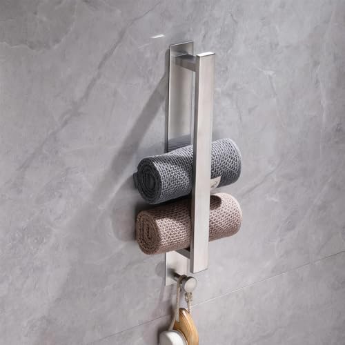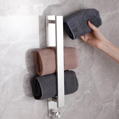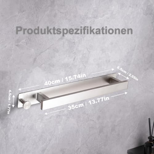 LzPoaitr - حامل مناشف ذاتي اللصق من الستانلس ستيل لا يتطلب ثقب، حامل مناشف للضيوف، فضي 40 سم