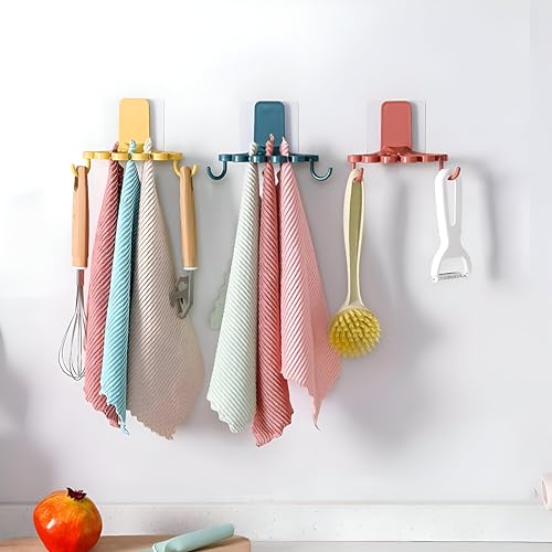 Generic - رف مناشف - منظم تخزين جداري انيق على شكل زهرة مع خطاف، لا حاجة للثقب، مثالي للملاعق والملاعق والمناشف، يحافظ على مطبخك أنيقًا (ازرق)