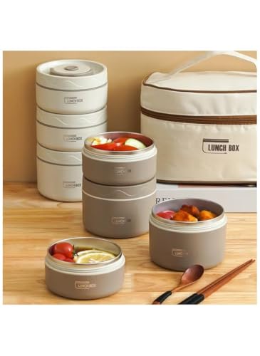 TOY BOX - توي بوكس صندوق غداء حراري قابل للاستخدام في الميكروويف، حاويات غداء معزولة محمولة مع حقيبة، حاوية طعام ستانلس ستيل قابلة للتكديس مانعة للتسرب للبالغين والاطفال، مجموعة من 3 طبقات معزولة بينتو 103716