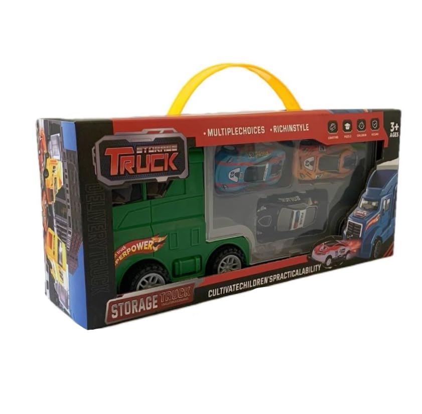 - شاحنة تخزين متعددة الوظائف: لعبة شاحنة تخزين كبيرة تتضمن سيارات صغيرة متعددة بألوان زاهية، مثالية لتنظيم وتخزين ألعاب السيارات
