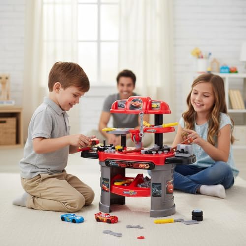 Generic - لعبة محطة عمل جراج كول للاطفال من توي ورلد - احمر
