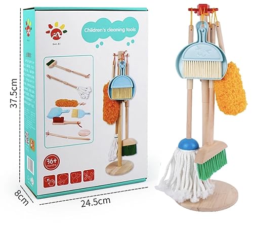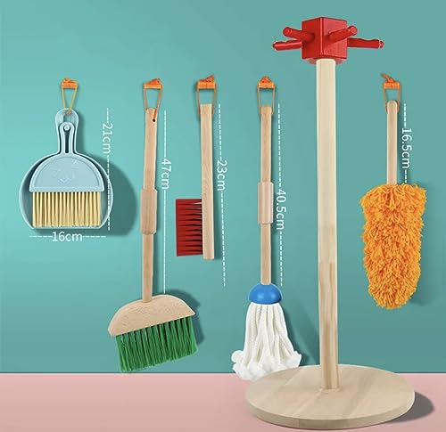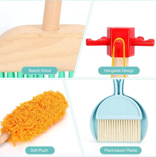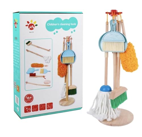 TOYARTSY - مجموعة أدوات تنظيف خشبية للأطفال من تويارتسي - شرشوبة منزلية كاملة ومكنسة وإسفنجة وممسحة قماشية وفرشاة وجاروف ومنفضة مع منظم، مجموعة تنظيف للعب التظاهري لعمر من 3 إلى 6 سنوات - ممتعة وتعليمية