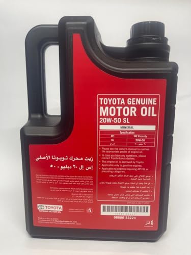 Toyota - تويوتا زيت محرك اصلي 20W-50 SL - زجاجة سوداء 4 لتر - رقم القطعة 08880-83224 - زيت محرك معدني لمحركات البنزين (حتى 5000 كم)