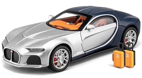 TOYS LAND - نموذج سيارة مصبوبة بمقياس 1:24 متوافق مع موديل اتلانتيك من خليط معدني تعمل بالسحب للخلف وبأبواب معدنية قابلة للفتح مع محاكاة للصوت والضوء للبالغين والأطفال من تويز لاند (لون فضي + أزرق)