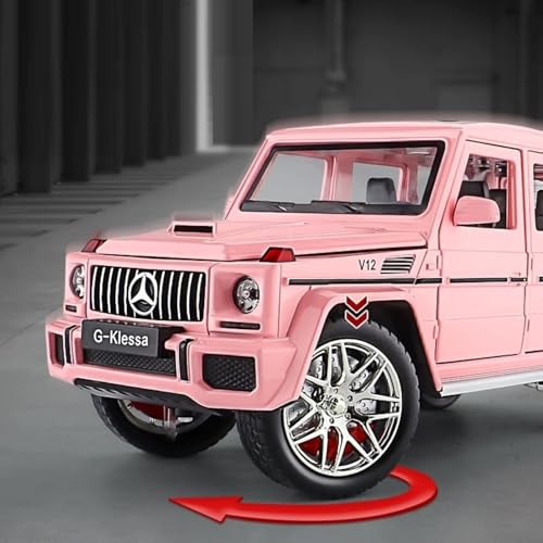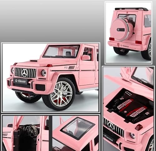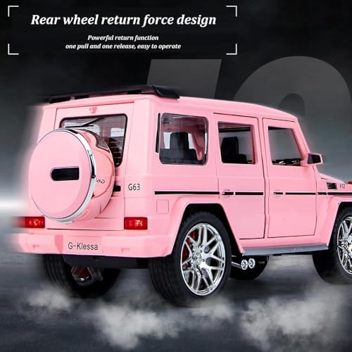 TOYS LAND - نموذج سيارة مصبوبة بمقياس 1:24 متوافقة مع موديل G63 بأبواب سيارة معدن قابلة للفتح مع محاكاة الصوت والضوء، مركبة لعبة مصنوعة من خليط معدن مناسبة للبالغين والأطفال والأولاد والبنات من تويز لاند (وردي)