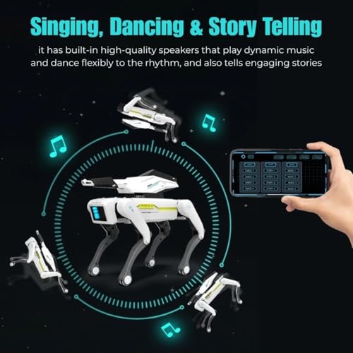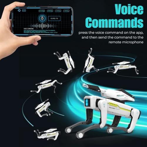 - أوضاع تحكم متعددة - تحكم عن بعد وتطبيق وتحكم صوتي: مدعوم بشريحة ذكية، يضمن هذا الروبوت بالذكاء الاصطناعي اتصالاً مستقرًا بدون تأخير يصل إلى 25 مترًا. يمكن أيضًا التحكم في الروبوت باستخدام تطبيق الجوال أو الأوامر الصوتية للحصول على تجربة أكثر تفاعلية. ما عليك سوى مسح رمز الاستجابة السريعة لتنزيل التطبيق المصاحب المتوافق مع اي او اس واندرويد، يستجيب روبوت الكلب على الفور للأوامر، مما يجعله روبوتًا موثوقًا به للمتعة التفاعلية.