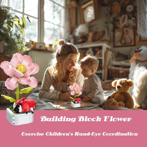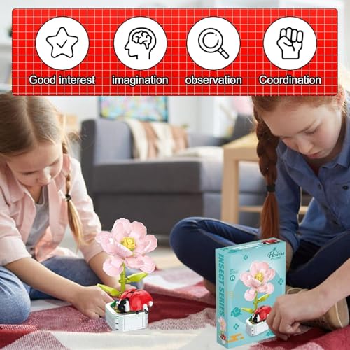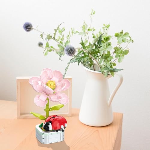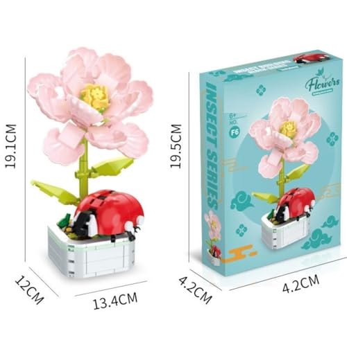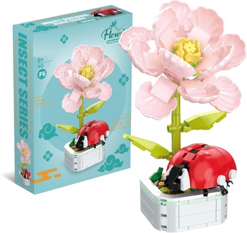 TOYS LAND - لعبة مكعبات بناء بتصميم باقة زهور صناعية وحيوانات مكونة من 201 قطعة صغيرة قابلة للتكديس للنساء والبالغين والأطفال تويز لاند تصميم خنفساء الكركديه