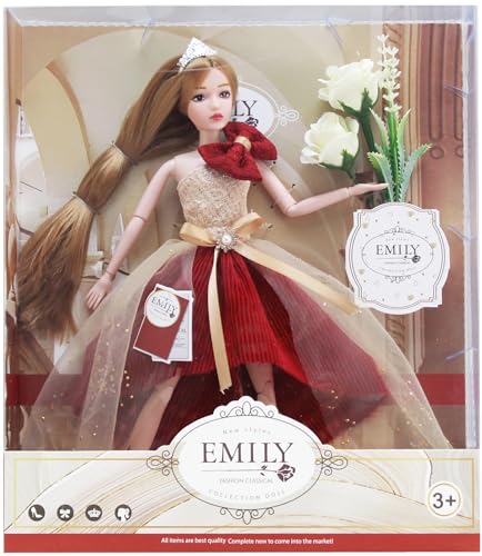 TOYS LAND - عروسة ايميلي عصرية بمفاصل وفستان رائع وشعر طويل وجميل، عروسة من مجموعة ايميلي فاشون كلاسيك للبنات بعمر 3 سنوات فما فوق، 29 سم (QJ125C) من تويز لاند