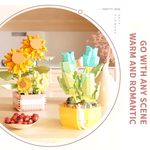 TOYS LAND - مجموعة ألعاب مكعبات بناء باقة زهور من تويز لاند صغيرة 334 قطعة لبناء نباتات وزهور صناعية إبداعية على شكل لديكور المنزل والمكتب هدية عيد ميلاد للبالغين والأطفال