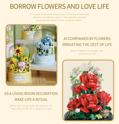 - صندوق موسيقى دوار سهل البناء: عيد الأم قادم! عيد ميلاد الزوجة أو الأم القادم! هل تبحث عن هدايا إبداعية للأعياد؟ مجموعات ألعاب مكعبات صندوق الموسيقى لباقة الزهور والنباتات هي الخيار الأمثل لك. متوفرة مع تعليمات سهلة التطبيق لتتمكن بنفسك من صنع صندوق موسيقى جميل للنباتات والزهور! ما عليك سوى تدوير قاعدة الموسيقى وسيدور صندوق الموسيقى تلقائيًا 360 درجة، عارضًا عن جميع التفاصيل مصحوبة بموسيقى جميلة، مما يخلق أجواءًا رومانسية ومفاجأة فريدة