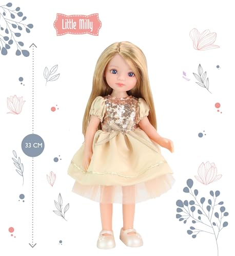 TOYS LAND - لعبة دمية ليتل ميلي الموسيقية العصرية للبنات من تويز لاند، ارتفاع 33 سم، دمية واقعية مع جسم ناعم متحرك وشعر حريري وملابس قابلة للتغيير، هدايا عيد ميلاد للاطفال من سن 3 سنوات فما فوق (C)