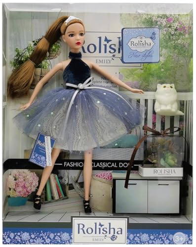 TOYS LAND - عروسة روليشا العصرية من تويز لاند، عروسة مفصلية 3 سم مع فستان رائع وشعر طويل جميل، عروسة مجموعة روليشا فاشون الكلاسيكية، أفضل هدية عيد ميلاد للبنات والأطفال والبالغين من سن 3 سنوات فما فوق (QJ102)