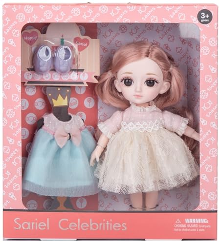 TOYS LAND - عروسة المشاهير ساريل بمفاصل مع مجموعة إضافية من الملابس والأحذية لها جسم ناعم وشعر حريري بعيون جميلة كبيرة للبنات بسن 3 سنوات فما فوق من تويز لاند، 16 سم 91018-C