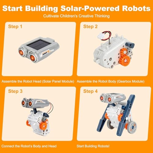 - مجموعة روبوتات تعمل بالطاقة الشمسية أو البطارية: تعمل بالطاقة الشمسية في الهواء الطلق أو بطاريات AAA في الداخل (غير متضمنة). تساعد الأطفال على فهم مفاهيم الطاقة المتجددة من خلال تجربة البناء في العالم الحقيقي.