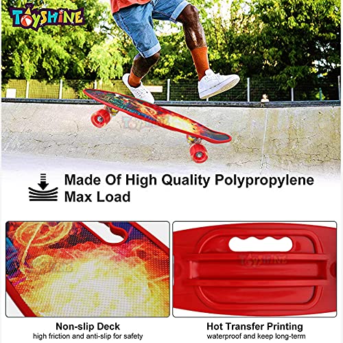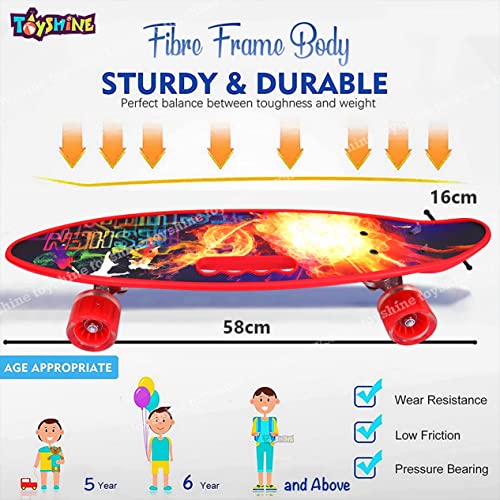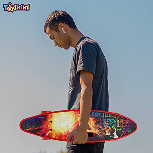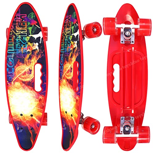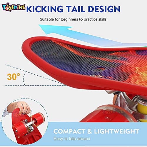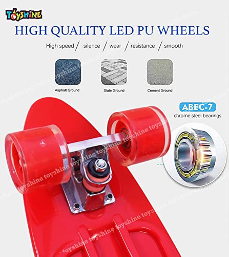 Toyshine - لوح تزلج كامل مقاس 59 سم من تويز شاين، بإضاءة LED لجميع العجلات للمبتدئين، لون ايرون بلاست ريد