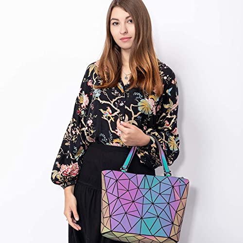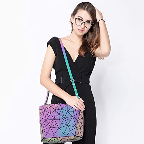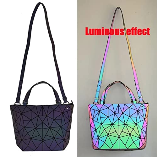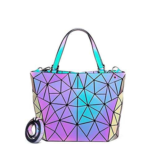 TOYTUS : LEARN CREATE ENJOY - شنطة يد بتصميم هندسي مضيء كوزميك للنساء من تويتوس: شنطة كتف بتصميم هولوغرافي مع حزام طويل قابل للفصل، متعددة الالوان