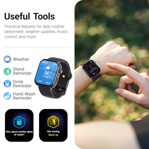 TOZO - ساعة ذكية اموليد S6 بشاشة 1.85 بوصة فائقة الوضوح وجوه ديناميكية ومكالمات بلوتوث وأكثر من 100 وضع رياضي ومتعقب النشاط البدني مع مراقبة النوم مقاومة للماء IP68 من توزو، أسود