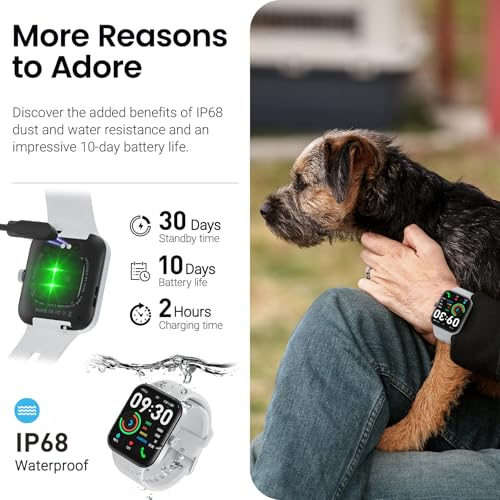 TOZO - ساعة ذكية للجنسين، مزودة بمكالمات بلوتوث، وشاشة لمس 1.78 بوصة، وساعة رياضية مع 100 وضع رياضي، ومراقبة معدل ضربات القلب والنوم وعداد الخطوات، ومقاومة للماء بمعيار IP68 لنظامي اندرويد و iOS، فضي