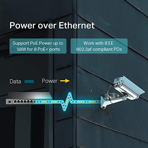 TP-Link - مفتاح الشبكة جيجابت PoE بـ 8 منافذ من تي بي لينك | 8 منافذ PoE+ @58 وات مع فتحتين SFP | إدارة ذكية | حماية محدودة مدى الحياة | يدعم VLAN L2/L3/L4 QoS، IGMP وتجميع الوصلات (TL-SG2210P)