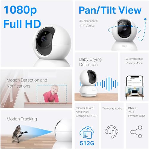 Tapo - كاميرا مراقبة داخلية تابو TC71 من تي بي لينك، 3 ميجابكسل، كاميرا اي بي قبة 360 درجة، جهاز تحكم عن بعد بالتطبيق، تعمل مع اليكسا