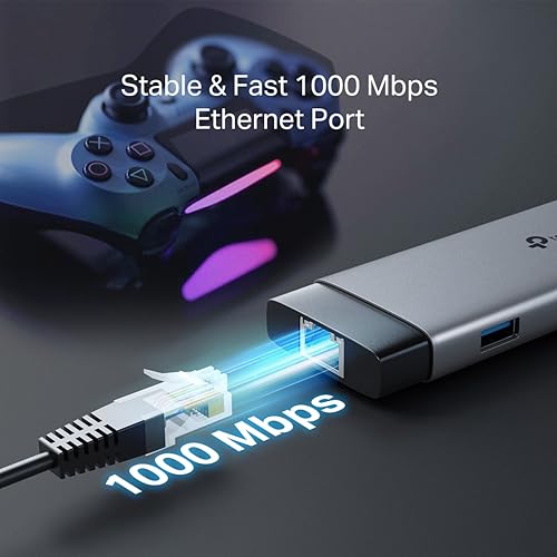 - اتصال جيجابت ثابت: توفر هذه الأداة المدمجة اتصالًا ثابتًا جيجابت ايثرنت لأي شخص من أجهزة الترا بوك أو كروم بوك أو اللاب توب أو الكمبيوتر المكتبي.