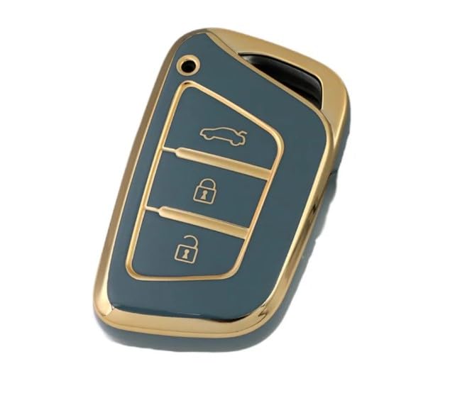 Generic - غطاء حافظة مفتاح سيارة من TPU – متوافق مع سيارات JAC SOL Refine X8 / A5 / S4 / S7 / A5 X4 / E10x – يشمل حلقة مفاتيح وسلسلة مفاتيح وملحقات حقيبة - رمادي مع إطار ذهبي