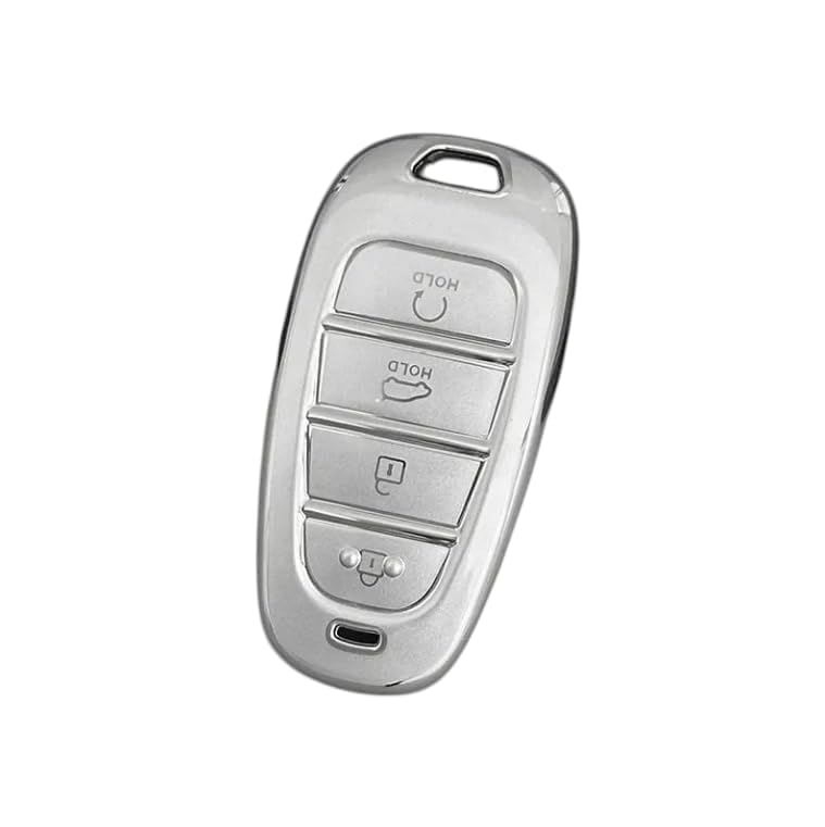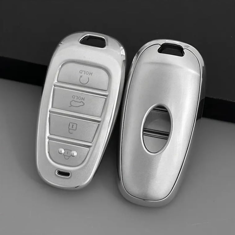 Generic - غطاء مفتاح سيارة من TPU بلون فضي غباري مع سلسلة مفاتيح – متوافق مع سيارة توسان مفتاح ذكي بـ 4 أزرار لطراز Tucson – الموديل SDTP75