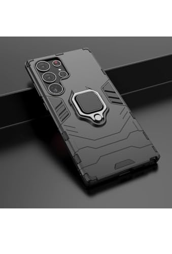 Generic - جراب موبايل مضاد للصدمات من البولي يوريثين المقاوم للحرارة والبولي كربونات، مزود بحامل حلقي يدور 360 درجة لموبايل سامسونج جالاكسي S23 الترا (اسود)