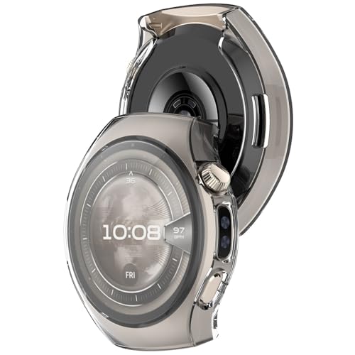fashion mania - جراب حماية شفاف من مادة البولي يوريثين المقاوم للحرارة لساعة هواوي واتش 5 42 ملم (إصدار 2025)، شاشة حماية بتغطية كاملة للشاشة ومقاوم للصدمات، شفاف