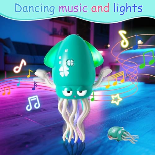 - 【أخطبوط مرح للرقص والزحف للأطفال】: أخطبوط راقص يتمايل ويدور ويزحف مع أضواء ملونة وموسيقى قابلة للتعديل، مما يشجع الأطفال على المشي والزحف. مثالي للعب النشط والتطور الحسي المبكر وخيار رائع لألعاب الأطفال من عمر 6 إلى 12 شهرًا، ومشايات الأطفال، وألعاب الأولاد والبنات بعمر سنة واحدة.
