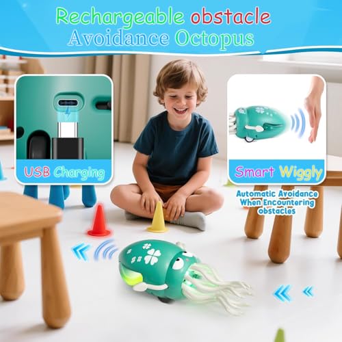 - 【تقنية ذكية لتجنب العوائق】: يستطيع هذا الأخطبوط الآلي اكتشاف العوائق وتجنبها أثناء الحركة بفضل أجهزة الاستشعار المدمجة. شاهدها وهي تغير اتجاهها تلقائياً وتستمر في التنقل حول الأثاث، مما يوفر ساعات من المرح دون انقطاع.