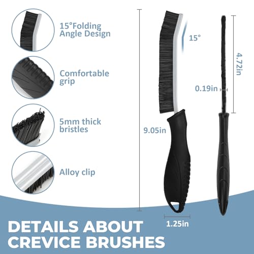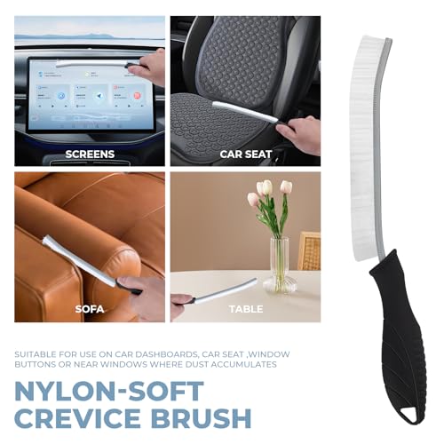 TQRR - فرشاة تنظيف داخلية للسيارة من تي كيو ار ار، تتضمن فرشاة تنظيف بشعيرات ناعمة، 2 فرشاة صلبة للشقوق، لوازم تنظيف، فرشاة منفضة غبار للسيارة متعددة الوظائف، ادوات تنظيف لعجلة التهوية الاوتوماتيكية (اسود)